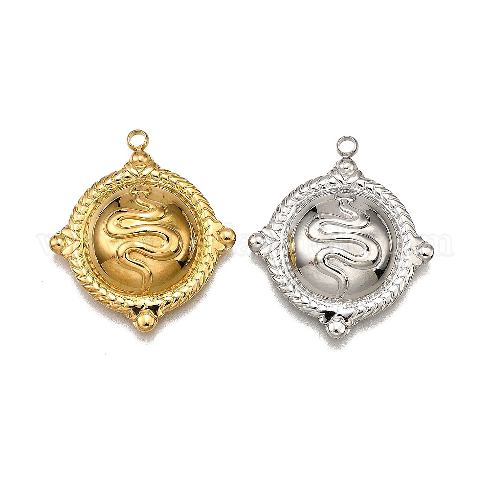 • Настоящее золото 18K 304 подвески из нержавеющей стали, плоский круг с подвеской в виде змеи, реальный 18 k позолоченный, 26.5x23.5x6 мм, отверстие : 2 мм