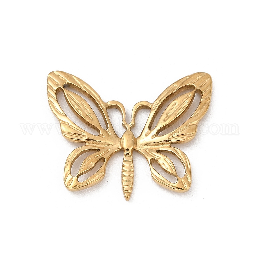 • Настоящее золото 18K 304 подвески из нержавеющей стали, ионное покрытие (ip), очарование бабочки, реальный 18 k позолоченный, 20.5x25x2.5 мм, отверстие : 2x5 мм