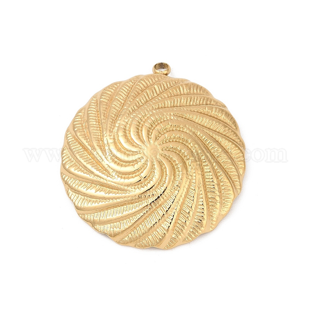 • Настоящее золото 18K 304 подвески из нержавеющей стали, ионное покрытие (ip), плоский круглый шарм, реальный 18 k позолоченный, 31.5x29x5.5 мм, отверстие : 2 мм