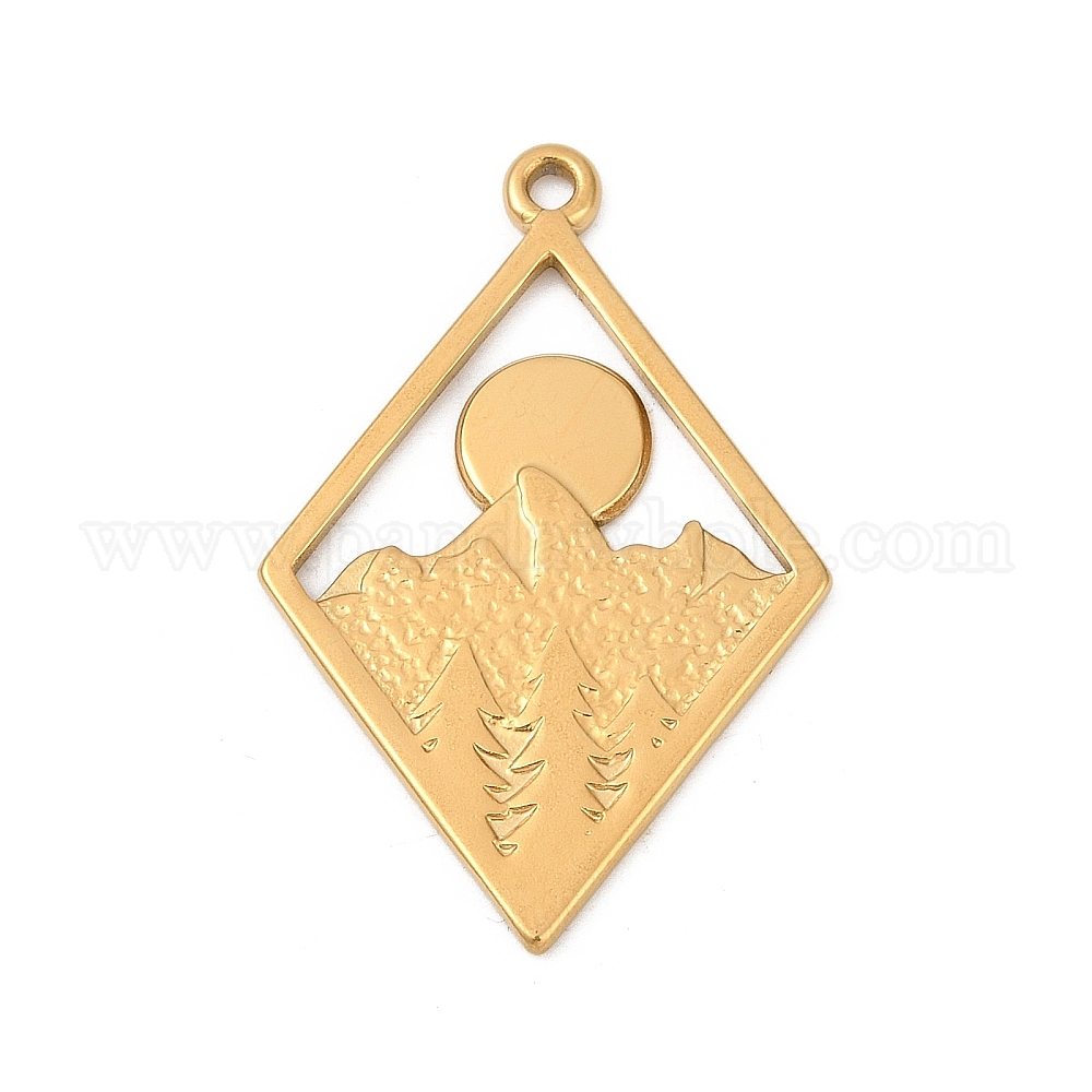 304 подвески из нержавеющей стали, ионное покрытие (ip), ромб с солнечным и горным очарованием