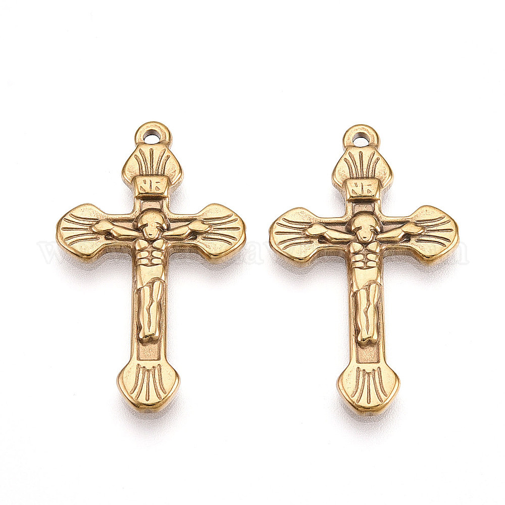 • Настоящее золото 18K 304 подвески из нержавеющей стали, ионное покрытие (ip), подвески в виде креста-распятия, реальный 18 k позолоченный, 30x18x2.5 мм, отверстие : 1.5 мм