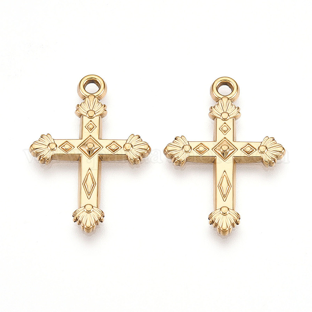 • Настоящее золото 18K 304 подвески из нержавеющей стали, ионное покрытие (ip), крест прелести, реальный 18 k позолоченный, 26x18.5x2 мм, отверстие : 1.8 мм
