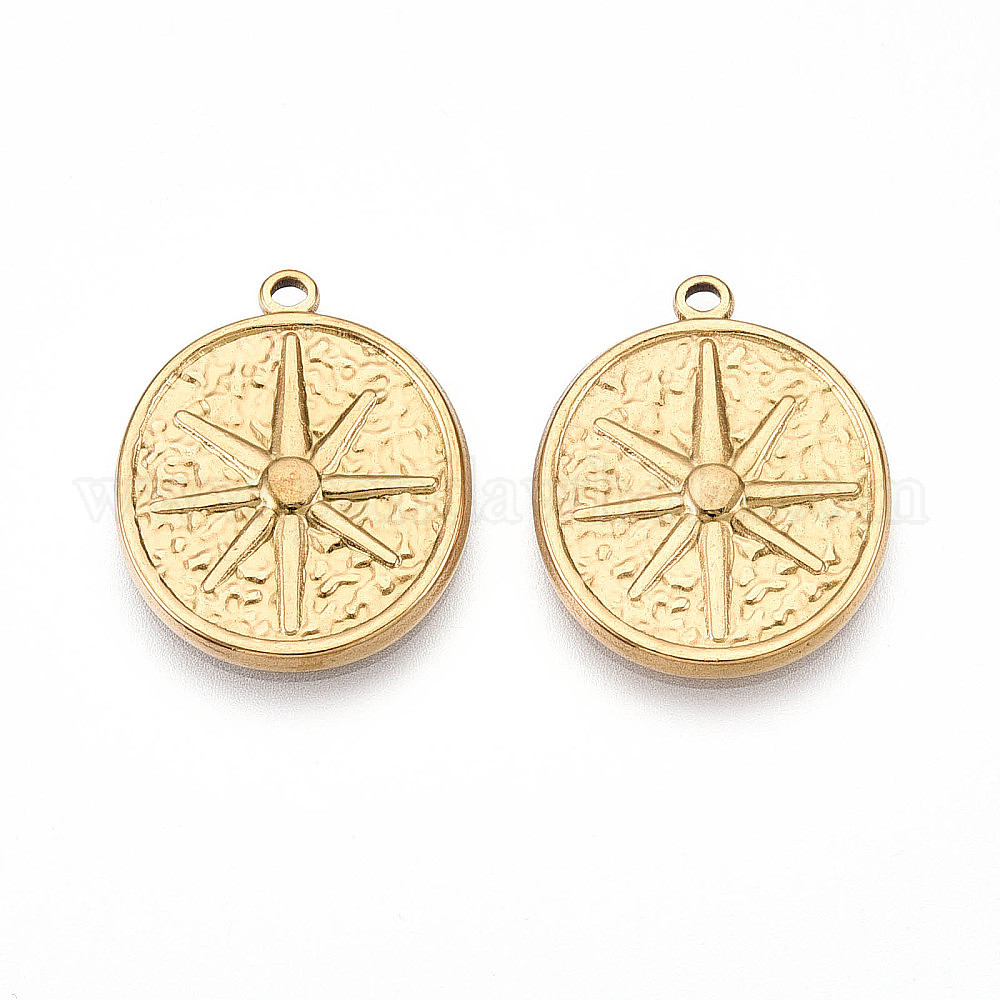 • Настоящее золото 18K 304 подвески из нержавеющей стали, ионное покрытие (ip), овал со звездочками, реальный 18 k позолоченный, 22.5x18.5x2 мм, отверстие : 1.5 мм