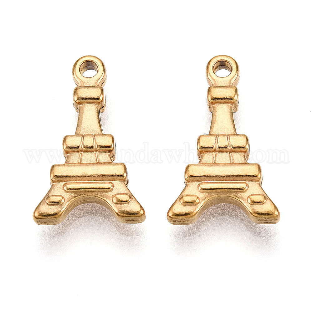 • Настоящее золото 18K 304 подвески из нержавеющей стали, ионное покрытие (ip), эйфелева башня подвески, реальный 18 k позолоченный, 17x10.5x3 мм, отверстие : 1.5 мм