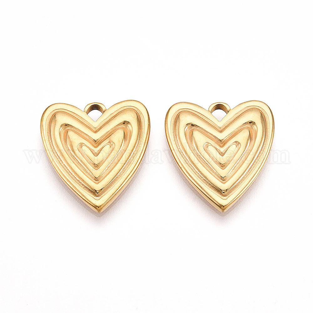 • Настоящее золото 18K 304 подвески из нержавеющей стали, ионное покрытие (ip), сердце прелести, реальный 18 k позолоченный, 19x17x3 мм, отверстие : 3x2.5 мм