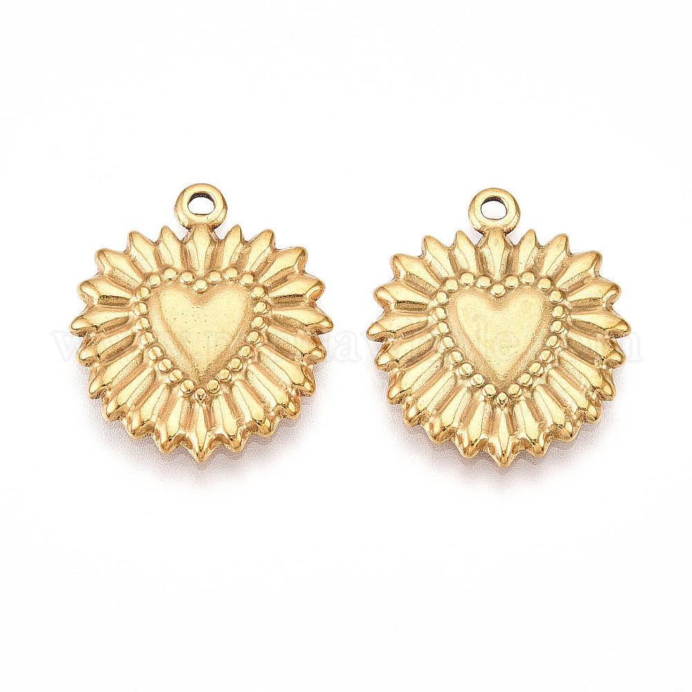 • Настоящее золото 18K 304 подвески из нержавеющей стали, ионное покрытие (ip), сердце прелести, реальный 18 k позолоченный, 22.5x19.5x2.5 мм, отверстие : 1.6 мм
