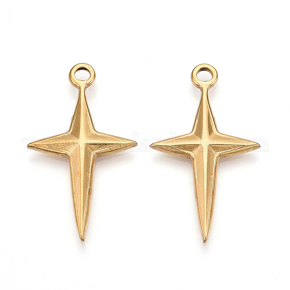 • Настоящее золото 18K 304 подвески из нержавеющей стали, ионное покрытие (ip), звезды прелести, реальный 18 k позолоченный, 35x20x2.5 мм, отверстие : 2.8 мм