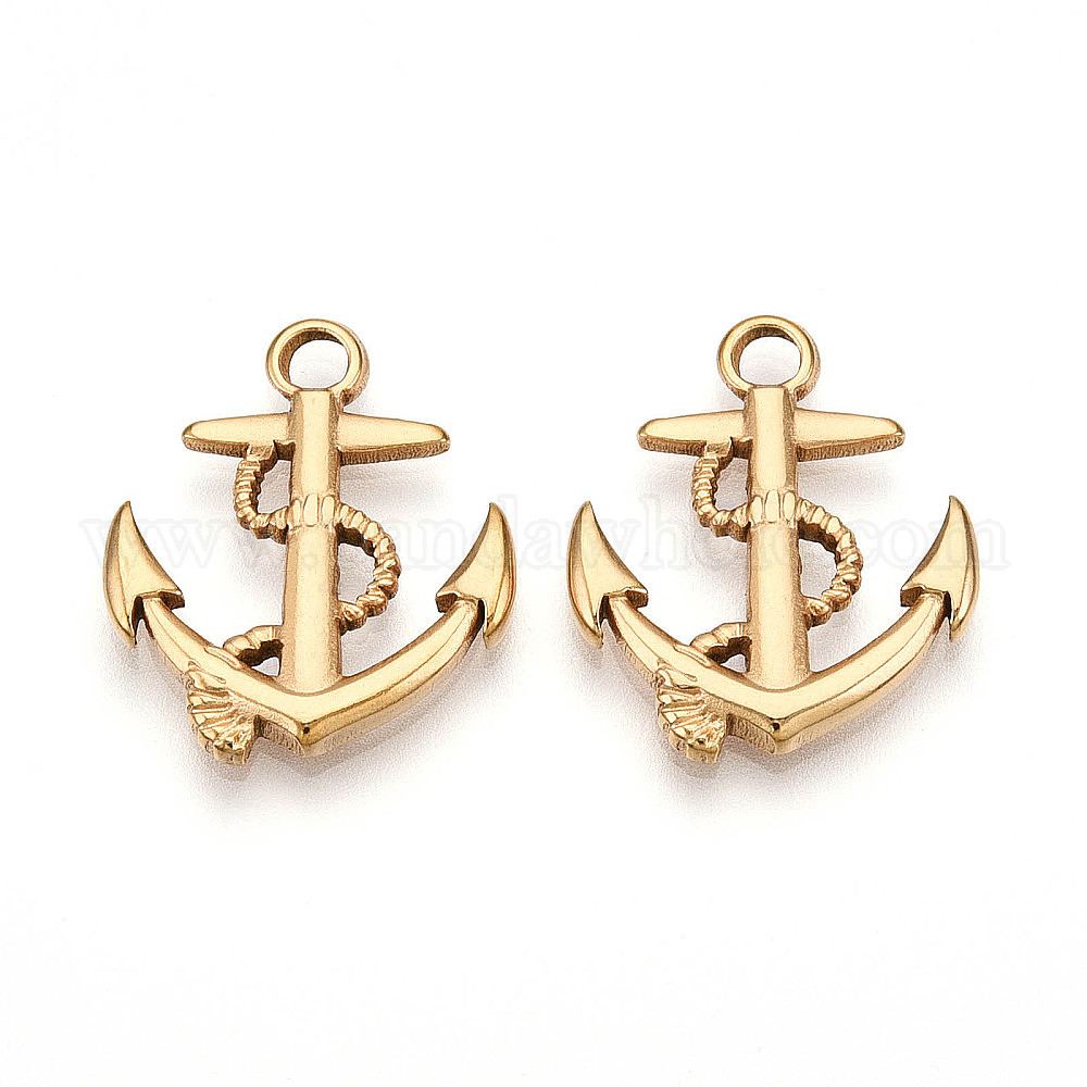 • Настоящее золото 18K 304 подвески из нержавеющей стали, ионное покрытие (ip), Якорь прелести, реальный 18 k позолоченный, 21x18x2 мм, отверстие : 2.8 мм