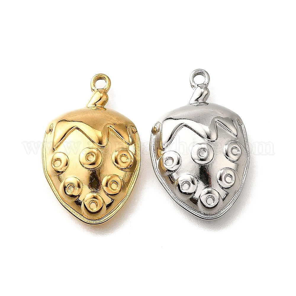 • Золотой 304 подвески из нержавеющей стали, ионное покрытие (ip), клубничное очарование, золотые, 21x13x4 мм, отверстие : 1.4 мм