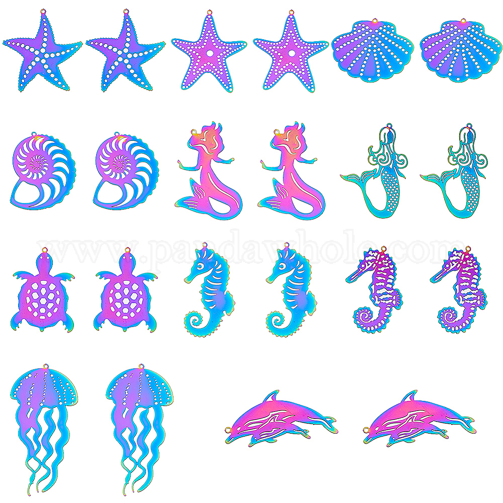 22 шт. 11 стили ионного покрытия (IP) 201 подвески с травлеными металлическими украшениями из нержавеющей стали, Радуга цветов, очарование морских животных