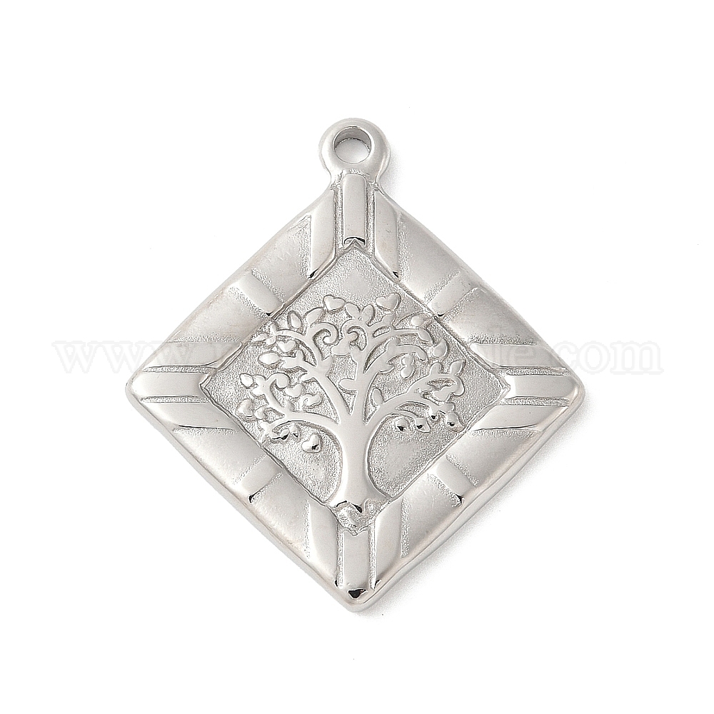 304 подвески из нержавеющей стали, ромб с оберегами «Древо жизни», не тускнеет