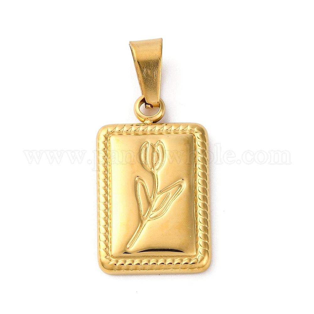• Настоящее золото 18K 304 подвески из нержавеющей стали для ожерелий, прямоугольник с цветочным узором подвески, реальный 18 k позолоченный, 22x13x3 мм, отверстие : 6x3 мм