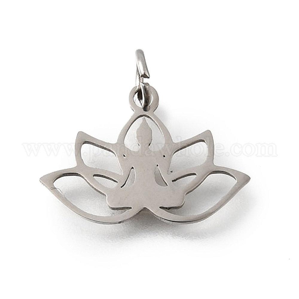 • Нержавеющая Сталь Цвет 304 прелести нержавеющей стали, йога и талисман цветка лотоса, с целью перехода в кольце, анти-тускнение, лазерная резка, цвет нержавеющей стали, 12.5x18.5x1 мм, отверстие : 3 мм