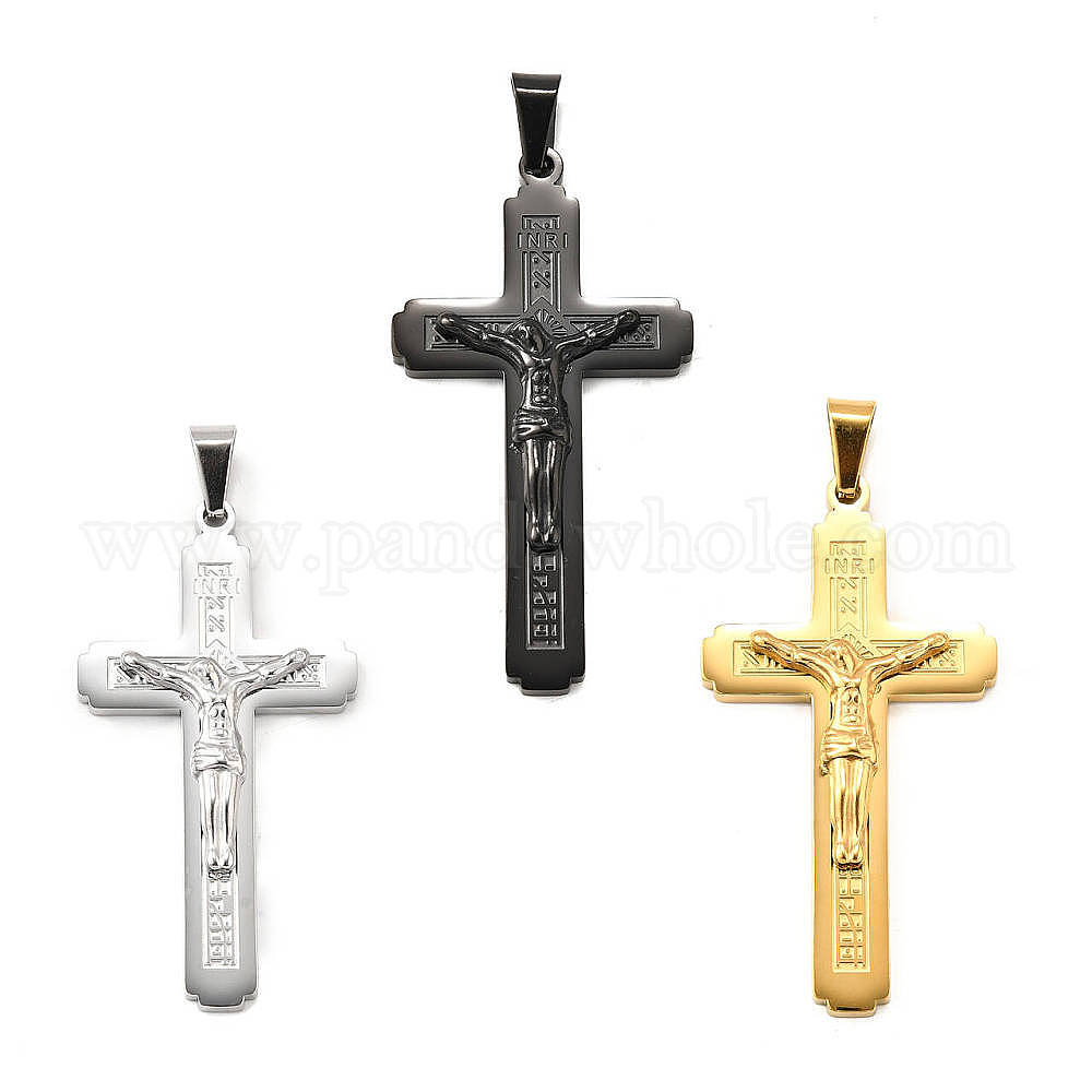 304 из нержавеющей стали большие кулоны, подвеска в виде креста-распятия, с 201 держателями для ледоруба из нержавеющей стали, ионное покрытие (ip)