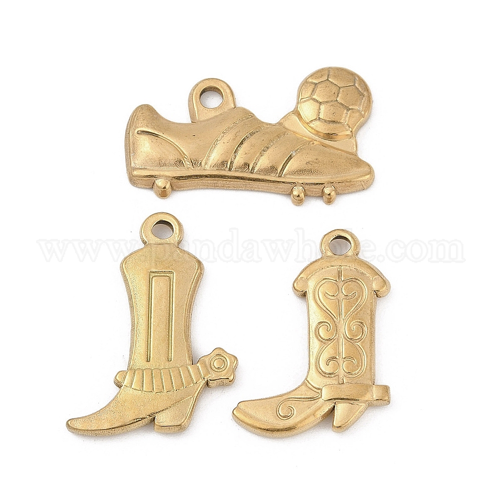 • Настоящее золото 18K 304 подвески из нержавеющей стали, ковбойские сапоги очарование, реальный 18 k позолоченный, 26.5x19x3.5 мм, отверстие : 2 мм