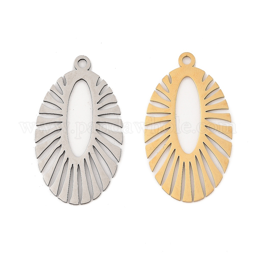 • Настоящее золото 18K 201 подвески из нержавеющей стали, лазерная резка, овальный шарм, реальный 18 k позолоченный, 38x21.5x1 мм, отверстие : 2 мм