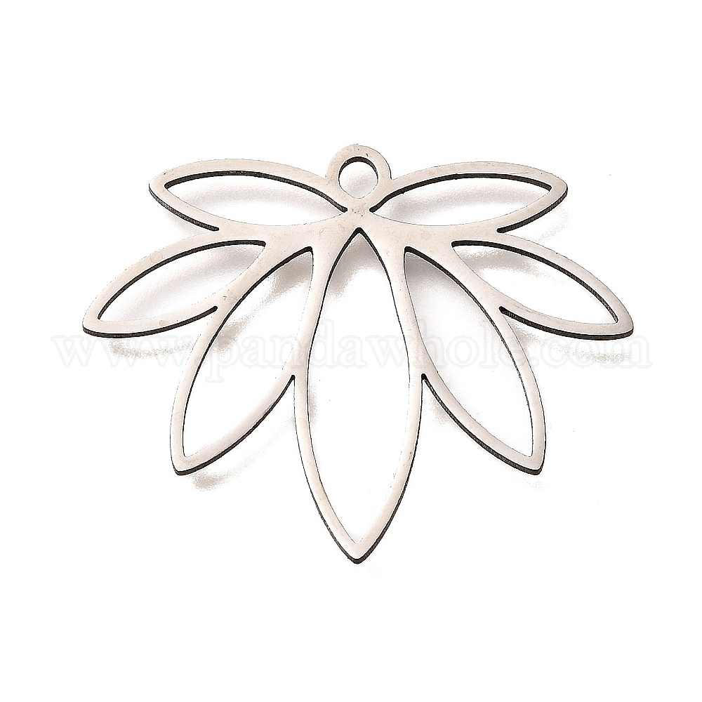 • Нержавеющая Сталь Цвет 201 подвески из нержавеющей стали, лазерная резка, полый шарм лотоса, анти-тускнение, цвет нержавеющей стали, 28x34.5x1 мм, отверстие : 2 мм