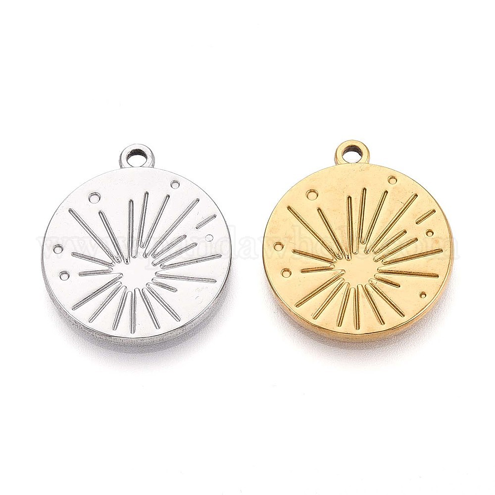 304 подвески из нержавеющей стали, плоский круглый с солнечным шармом, ионное покрытие (ip)