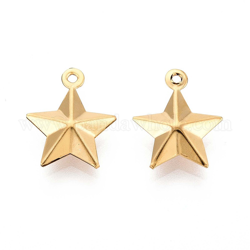 • Настоящее золото 18K 201 прелести нержавеющей стали, звезда очарование, ионное покрытие (ip), реальный 18 k позолоченный, 14.5x12.5x4 мм, отверстие : 1.4 мм