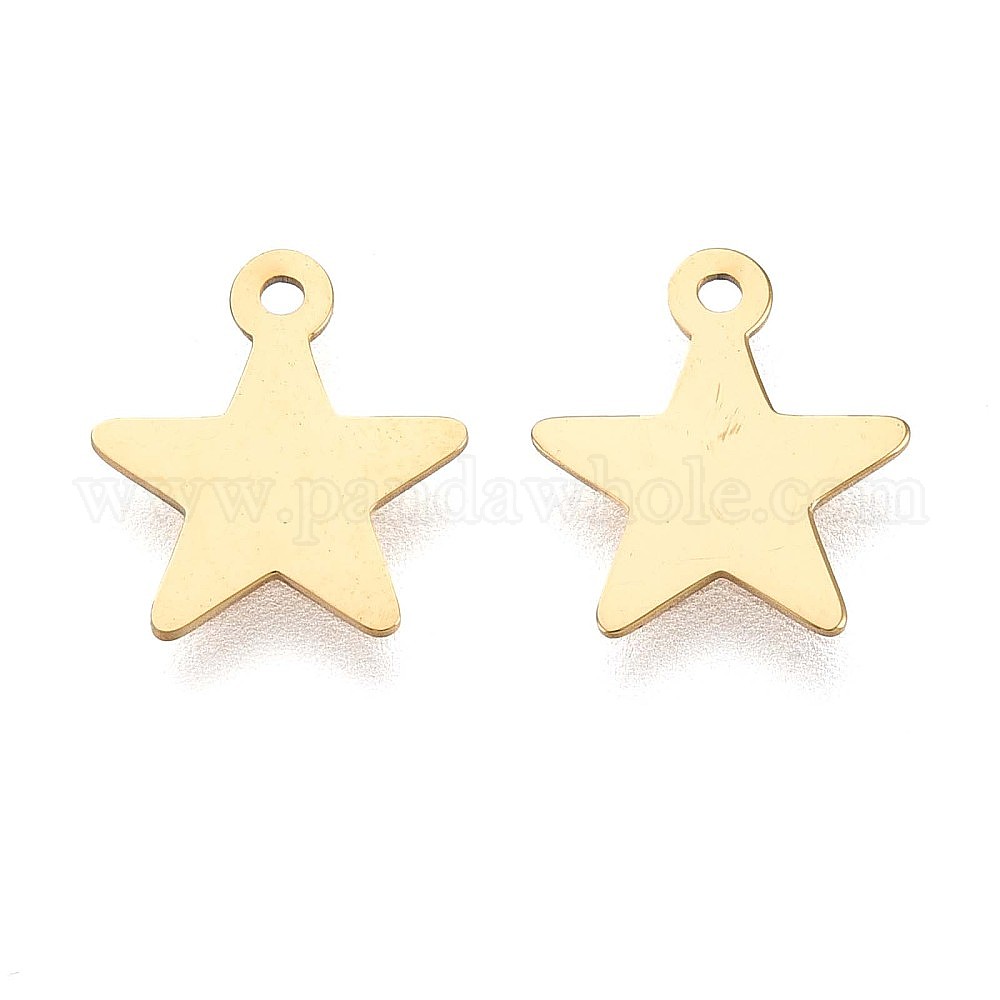 • Настоящее золото 14K Ионное покрытие (ip) 304 подвески из нержавеющей стали, звезды прелести, реальный 14 k позолоченный, 10x9x0.2 мм, отверстие : 1 мм