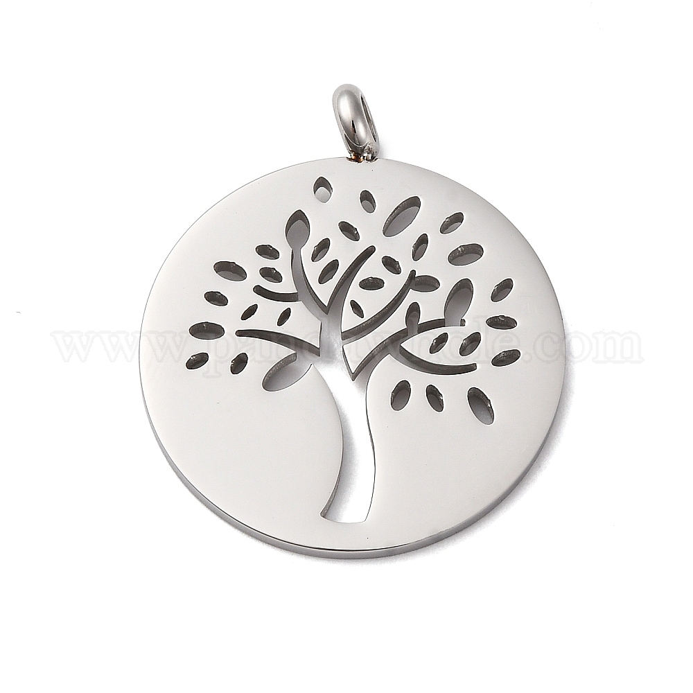 • Нержавеющая Сталь Цвет 304 подвески из нержавеющей стали, плоская круглая с подвеской дерево жизни, анти-тускнение, цвет нержавеющей стали, 29.5x25x1.5 мм, отверстие : 2.8 мм