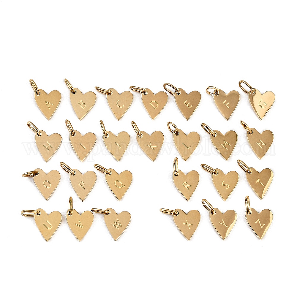 304 прелести нержавеющей стали, с прыжковых колец, сердце с подвесками в виде букв, золотые