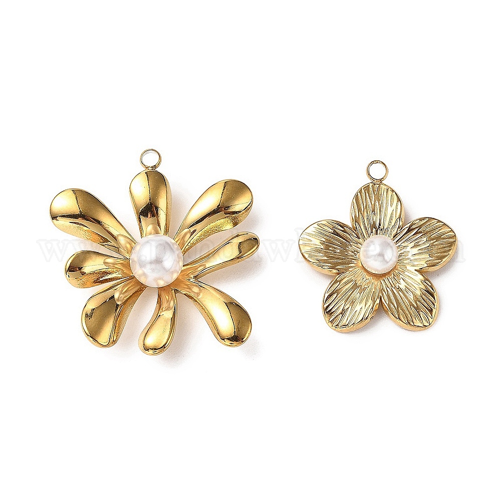 • Золотой 304 подвески из нержавеющей стали, с пластиковыми бусинами из искусственного жемчуга, цветок, золотые, 28x27x8 мм, отверстие : 2 мм