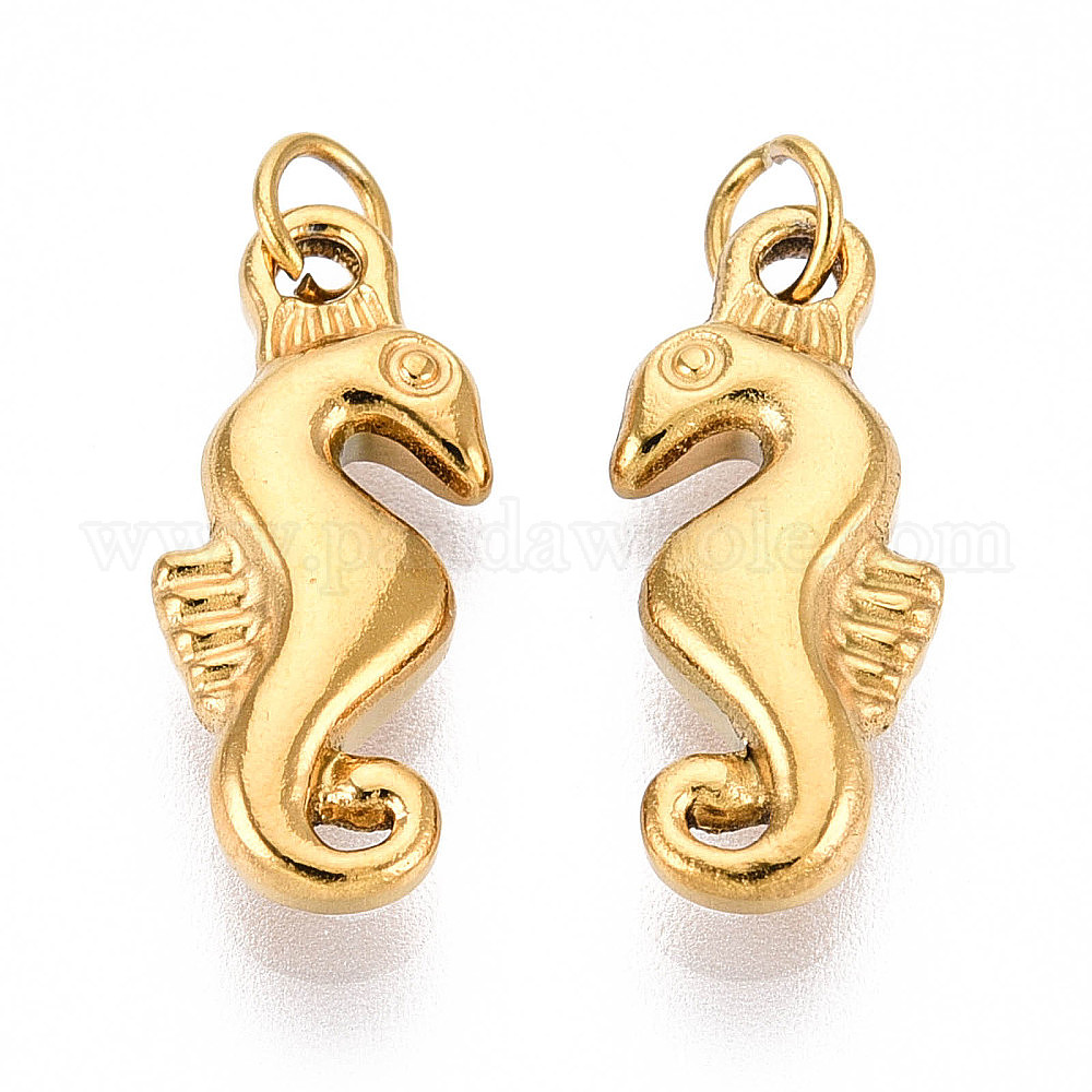 • Настоящее золото 18K 304 подвески из нержавеющей стали, с целью перехода в кольце, очарование морского конька, ионное покрытие (ip), реальный 18 k позолоченный, 17x7x3 мм, отверстие : 2.5 мм