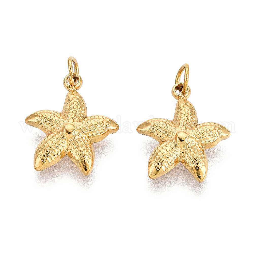 • Настоящее золото 18K 304 прелести нержавеющей стали, с целью перехода в кольце, очарование морской звезды, ионное покрытие (ip), реальный 18 k позолоченный, 13.5x11.5x2.5 мм, отверстие : 2.5 мм