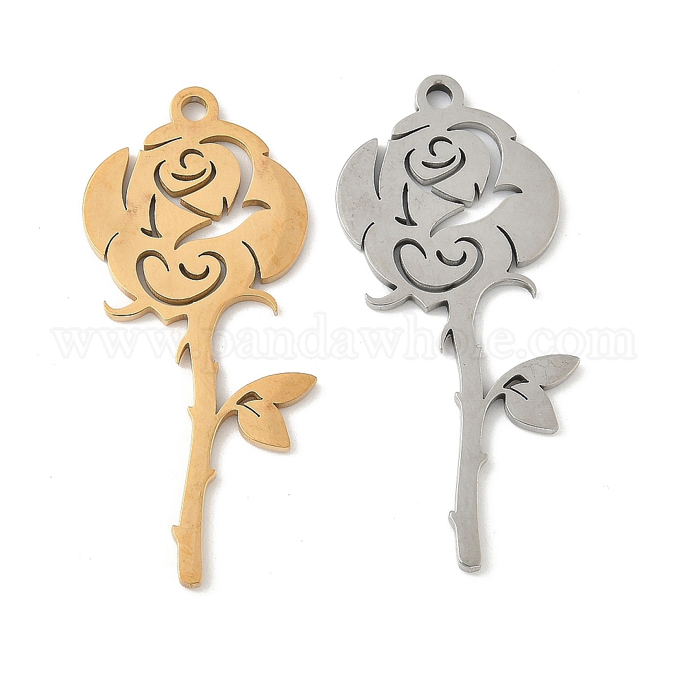 304 подвески из нержавеющей стали, цветочный шарм, лазерная резка, ионное покрытие (ip)