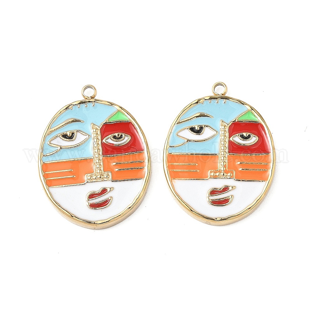 304 подвески из нержавеющей стали, овал с абстрактным лицом, с эмалью