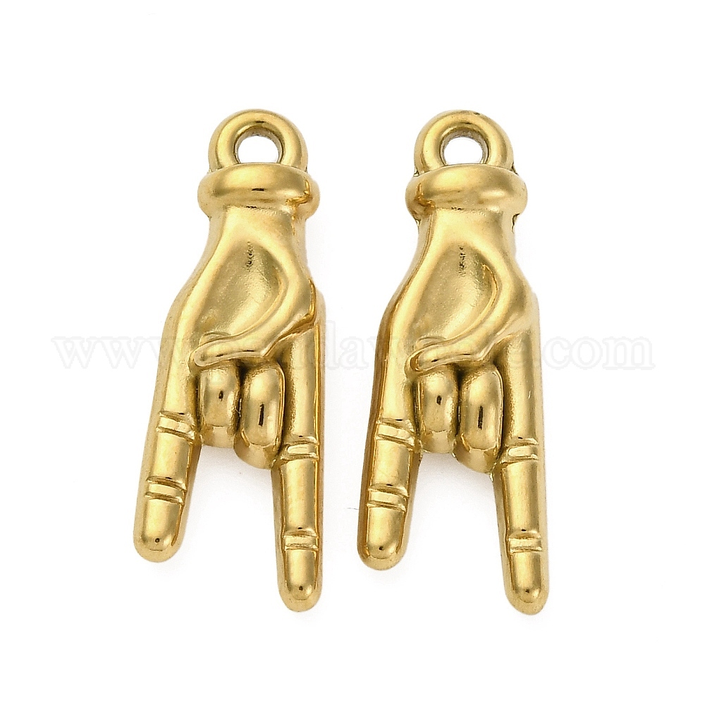 • Настоящее золото 18K 304 подвески из нержавеющей стали, ионное покрытие (ip), mano cornuto итальянский талисман для руки, реальный 18 k позолоченный, 23.5x8.5x4.5 мм, отверстие : 1.7 мм