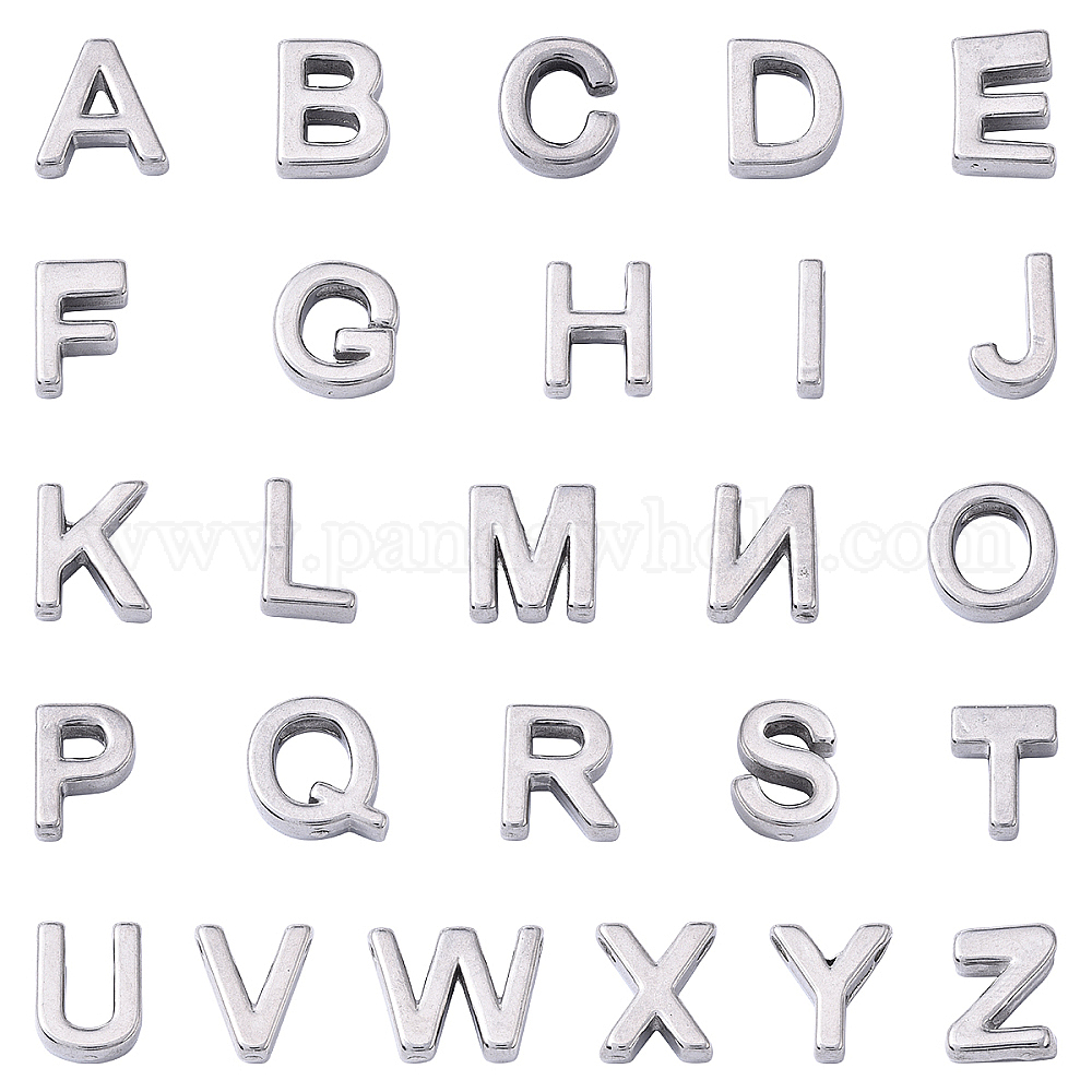 • Нержавеющая Сталь Цвет 304 прелести нержавеющей стали, алфавит, цвет нержавеющей стали, 9~10x2~11.5x3 мм, отверстие : 1.4~1.6 мм