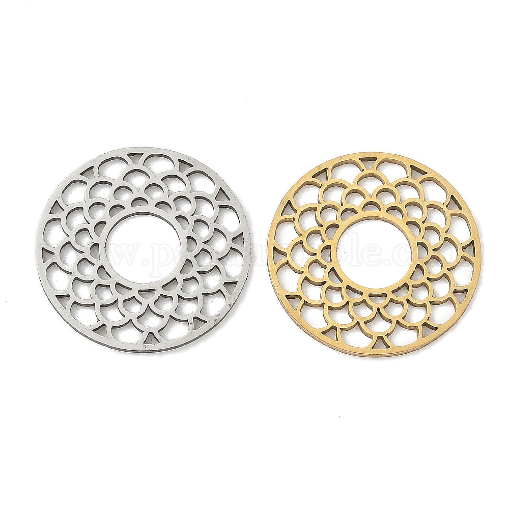 • Золотой 201 подвески из нержавеющей стали, плоско-круглые, золотые, 20.5x1 мм, отверстие : 2x3 мм