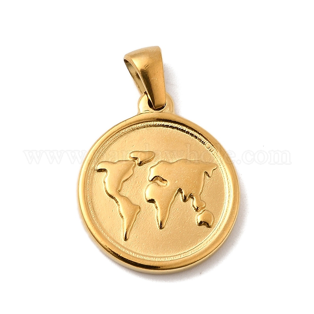 304 подвески из нержавеющей стали, ионное покрытие (ip), плоский круглый с подвеской в виде карты