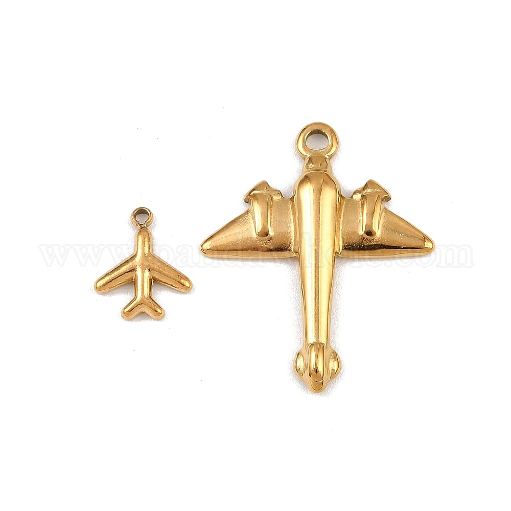 • Настоящее золото 18K 304 подвески из нержавеющей стали, ионное покрытие (ip), очарование самолета, реальный 18 k позолоченный, 24x20x2.5 мм, отверстие : 1.6 мм