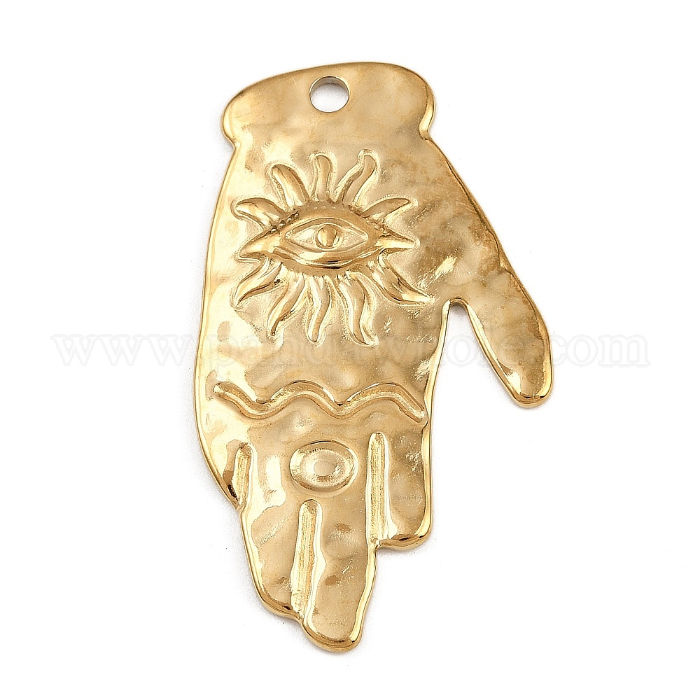 • Настоящее золото 18K 304 подвески из нержавеющей стали, ионное покрытие (ip), ладонь с подвеской в виде глаза, реальный 18 k позолоченный, 43x25x2 мм, отверстие : 2.5 мм