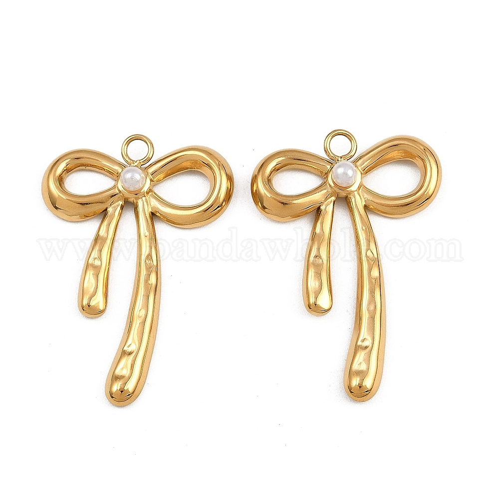 304 подвески из нержавеющей стали, с абс пластмассовой имитационной жемчужиной, ионное покрытие (ip), очарование бантом