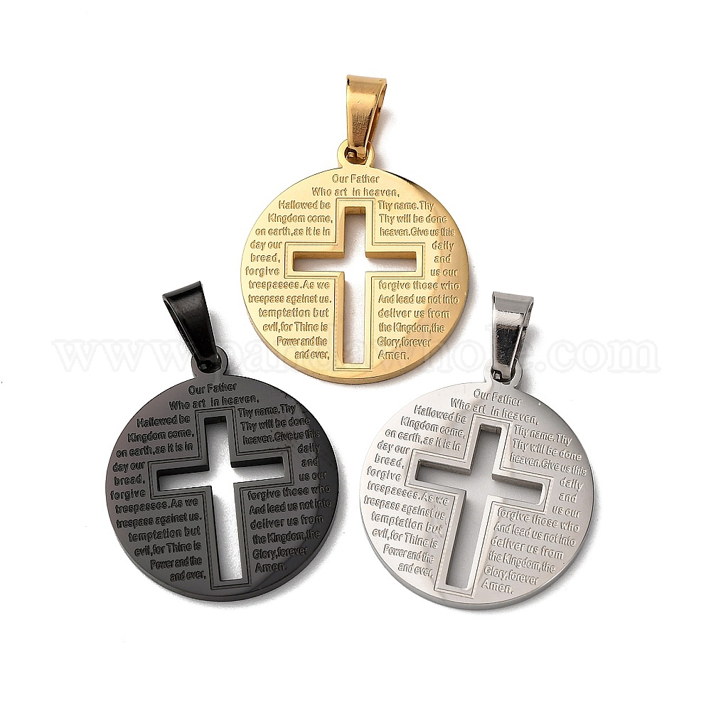 304 подвески из нержавеющей стали, плоский круглый с крестом и библейским амулетом, вакуумные покрытия