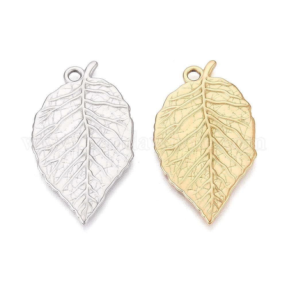 • Настоящее золото 18K 304 подвески из нержавеющей стали лист, ионное покрытие (ip), реальный 18 k позолоченный, 42x24x2 мм, отверстие : 2.5 мм