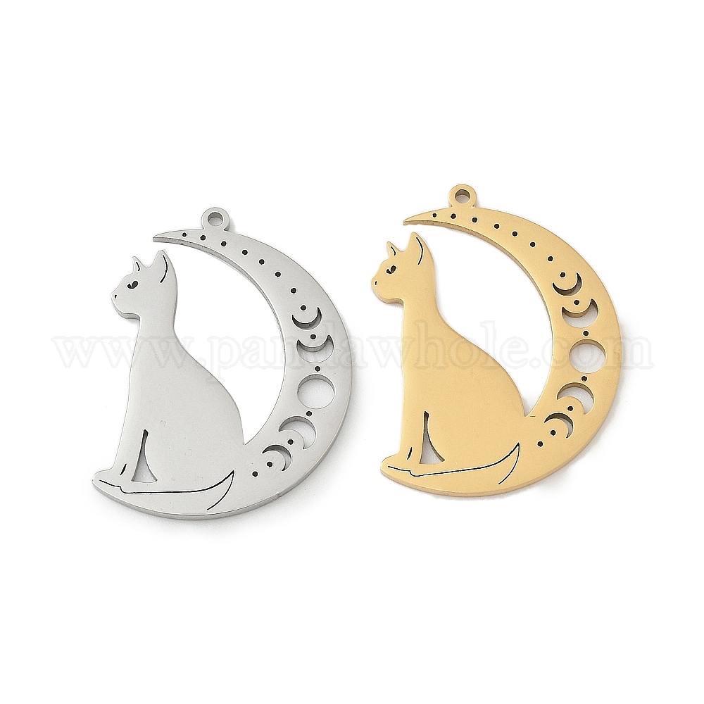 304 подвески из нержавеющей стали, полый, подвеска в форме луны и кошки