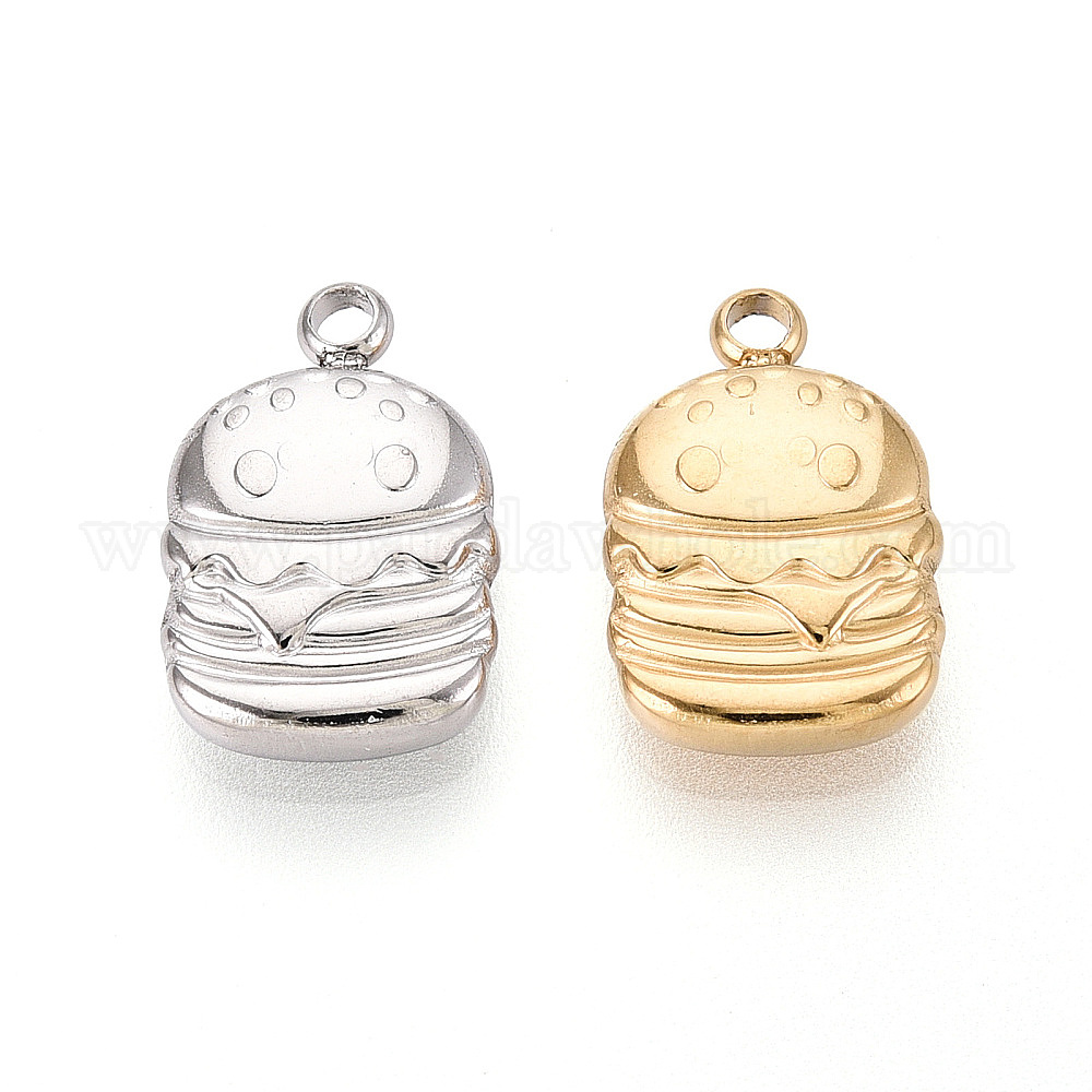 • Настоящее золото 18K 304 прелести нержавеющей стали, ионное покрытие (ip), гамбургер очарование, реальный 18 k позолоченный, 15x10x3 мм, отверстие : 1.8 мм