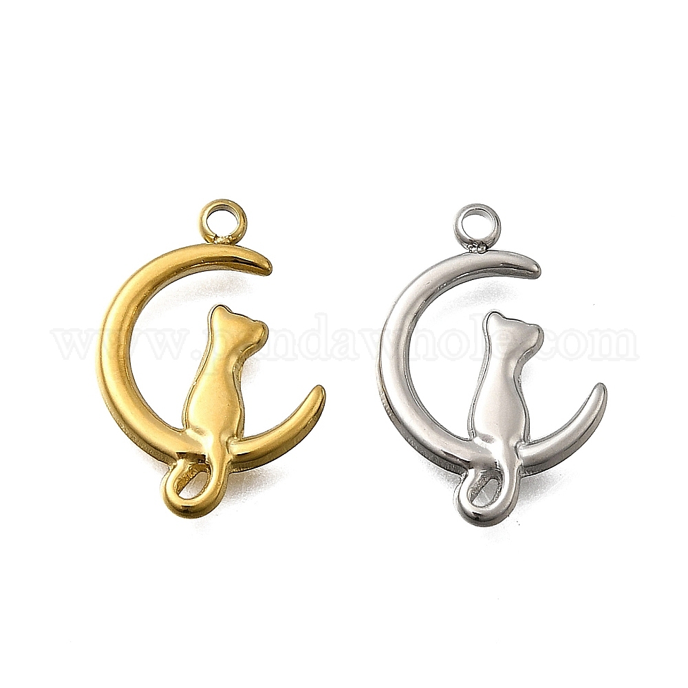 • Настоящее золото 18K 304 подвески из нержавеющей стали, Луна и кошка, ионное покрытие (ip), реальный 18 k позолоченный, 19x13x2 мм, отверстие : 1.8 мм