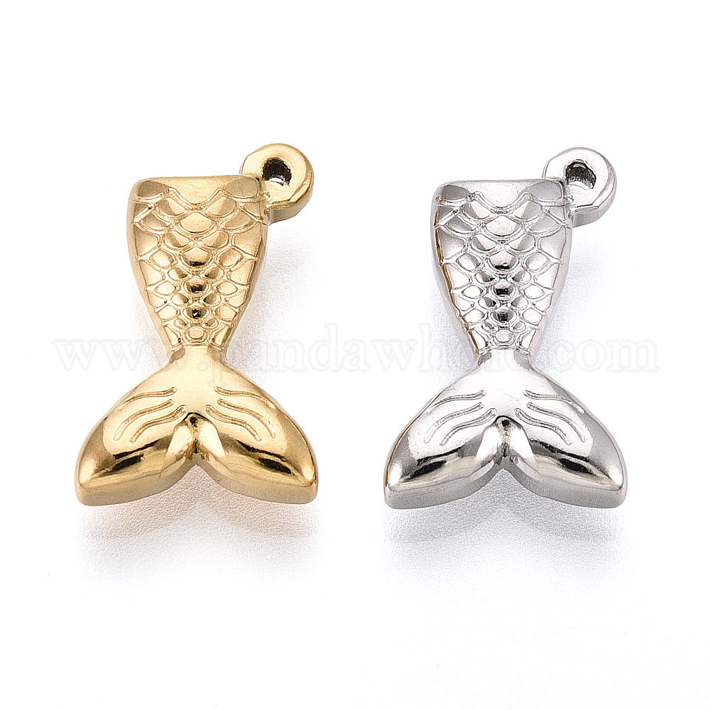 • Настоящее золото 18K 304 подвески из нержавеющей стали в форме рыбьего хвоста, ионное покрытие (ip), реальный 18 k позолоченный, 18x11x5 мм, отверстие : 0.8 мм