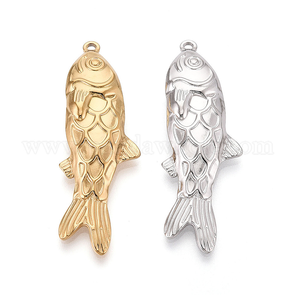• Настоящее золото 18K 304 из нержавеющей стали рыба кулоны, ионное покрытие (ip), реальный 18 k позолоченный, 50.5x17x4 мм, отверстие : 1.8 мм