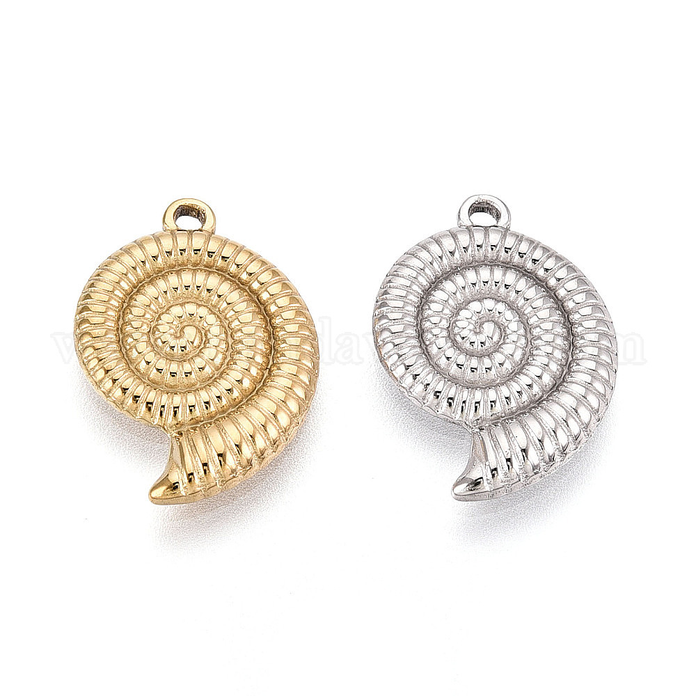 • Настоящее золото 18K 304 подвески-ракушки из нержавеющей стали, ионное покрытие (ip), реальный 18 k позолоченный, 20x14x2 мм, отверстие : 1.4 мм