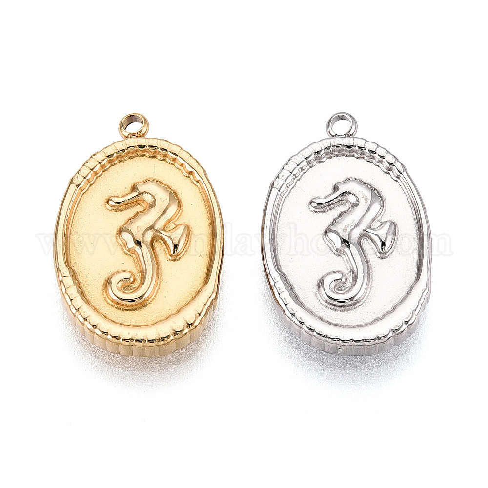 • Настоящее золото 18K 304 овал из нержавеющей стали с подвесками в виде морского домика, ионное покрытие (ip), реальный 18 k позолоченный, 23.5x15x3 мм, отверстие : 1.6 мм