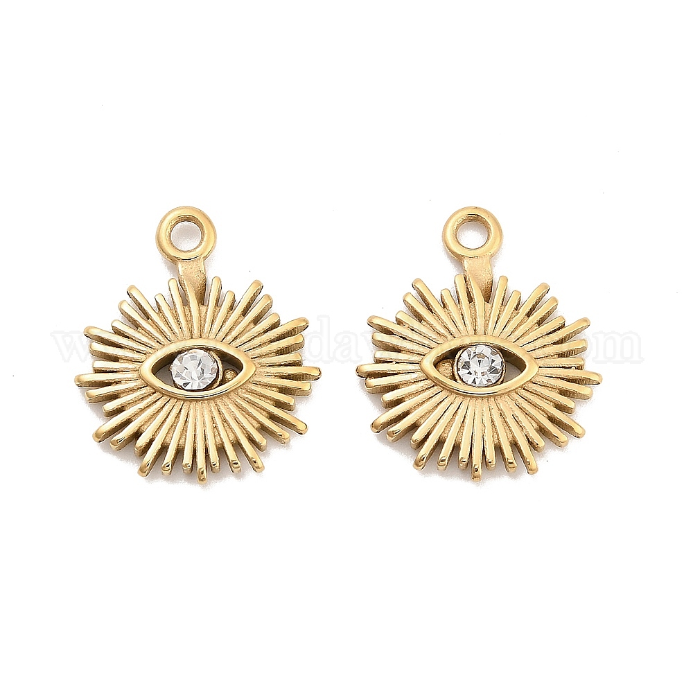• Настоящее золото 14K 304 подвески из нержавеющей стали, глаз, со стразами, реальный 14 k позолоченный, 20.5x17x3 мм, отверстие : 2 мм