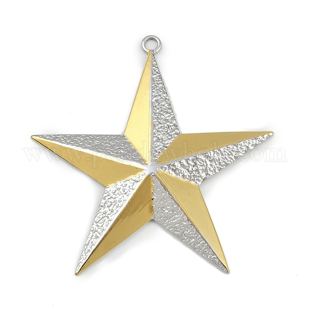 • Позолоченный и Цвет Нержавейки 304 из нержавеющей стали большие кулоны, брелок в форме звезды, ионное покрытие (ip), настоящее золото и нержавеющая сталь, 54x51x3.5 мм, отверстие : 2.5 мм