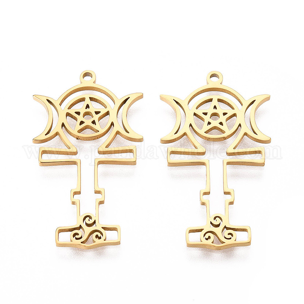 Полые 304 из нержавеющей стали кулоны, луна с пентаграммой
